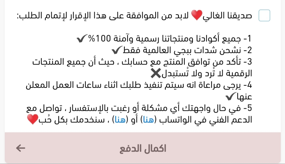 بعد تعبئة البيانات وافق على الإقرار بالأسفل ثم أضغط على إكمال الدفع