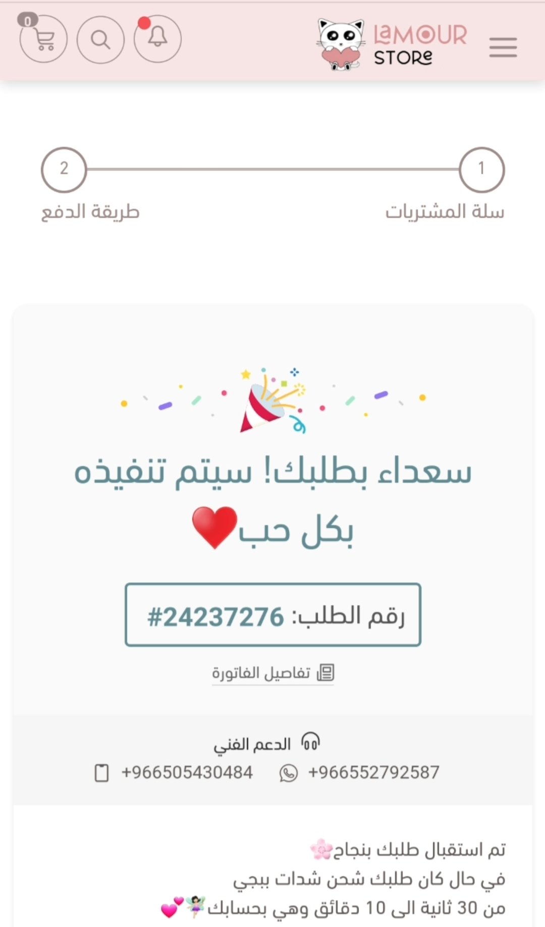 ومن ثم الف مبروك تمت عملية شراءك بنجاح! في حال كان طلبك تسليم فوري سوف تجده بعد الضغط على (تفاصيل الفاتورة) او من قائمة (الطلبات)